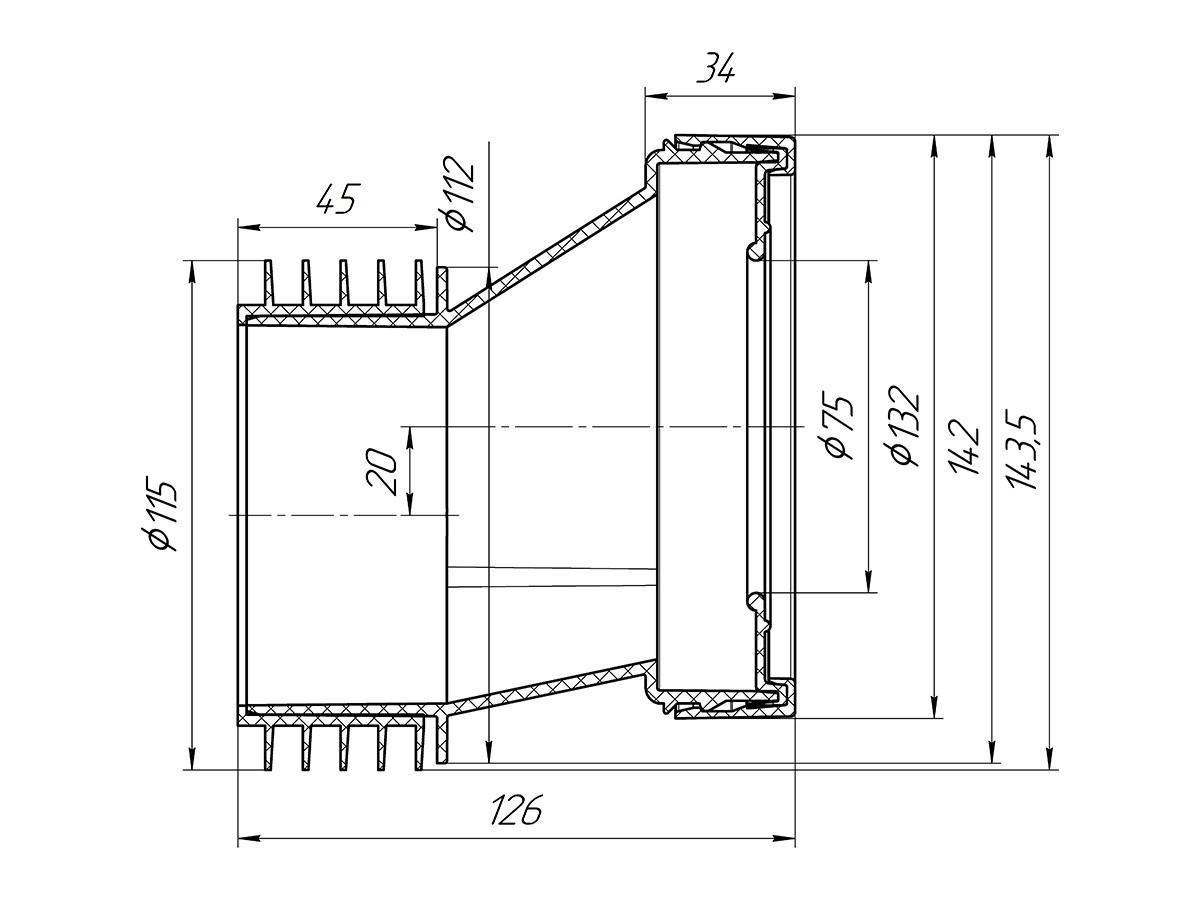 Эксцентрик жесткий для подключения унитаза к канализации диаметр 110 мм.