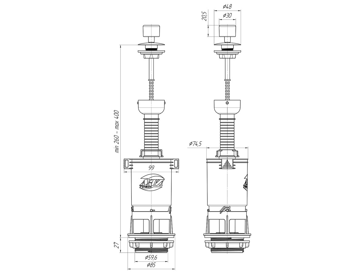 Сливной механизм металлизированная ручка со штоковым режимом слива, регулировка по высоте 260-400 мм. Арматура является важным механизмом, необходимым для правильной работы сливного бачка. Изделие произведено из высококачественного пластика, который обеспечивает длительную эксплуатацию без поломок.