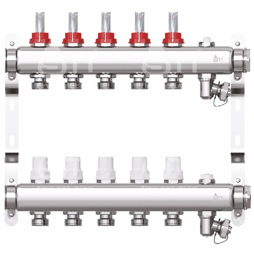 Коллекторная группа со встроенными расходомерами, 1"х5 вых., Евроконус 3/4" STI