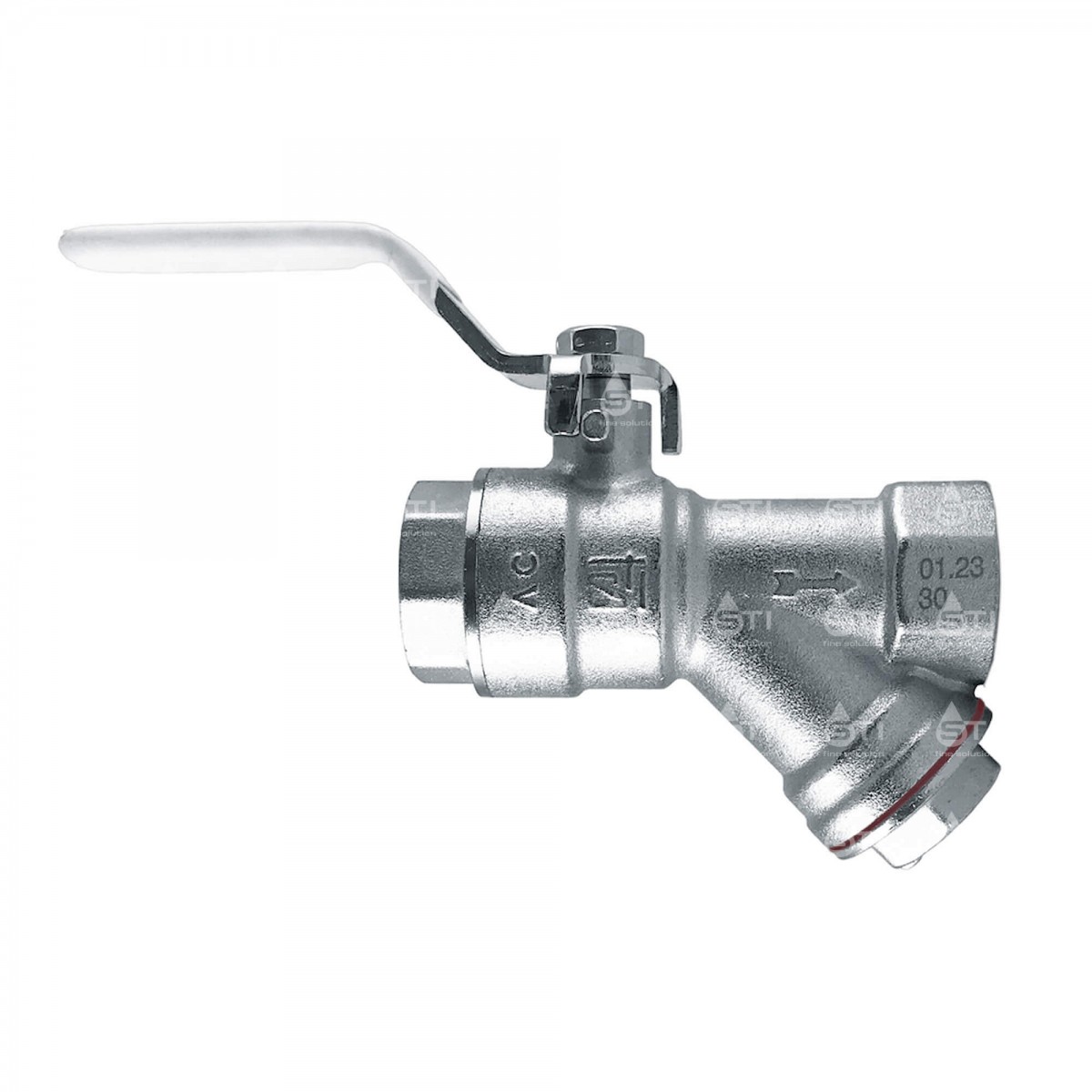 Кран шар. рыч. 1/2", гайка-гайка, вода, с фильтром STI