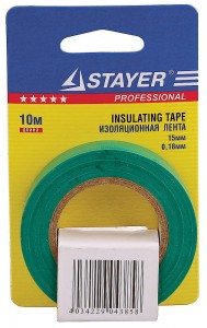 Изолента ПВХ, 15мм х 10м, зеленая, на карточке STAYER