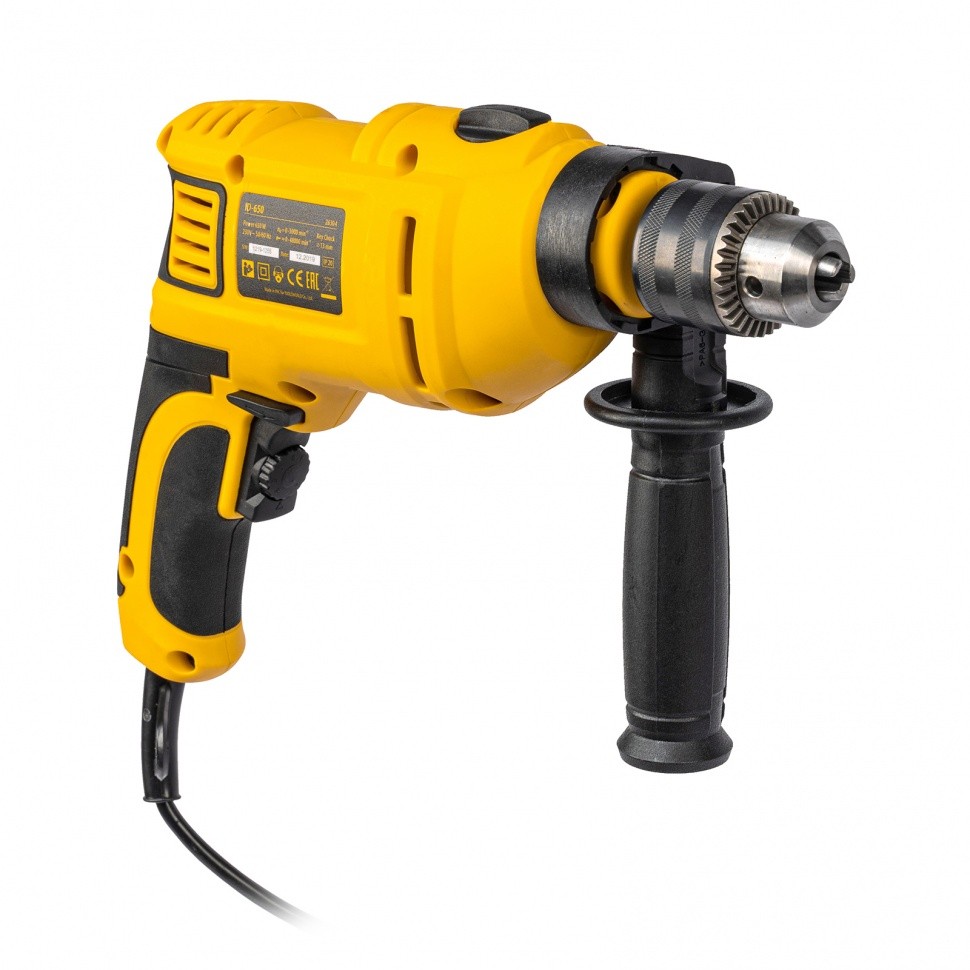 Используется для ручного или ударного сверления металла, древесины, легкого бетона, кирпича, плитки или пластика. Эффективное сверление твердых материалов обеспечивает массивный промщит ударного механизма.