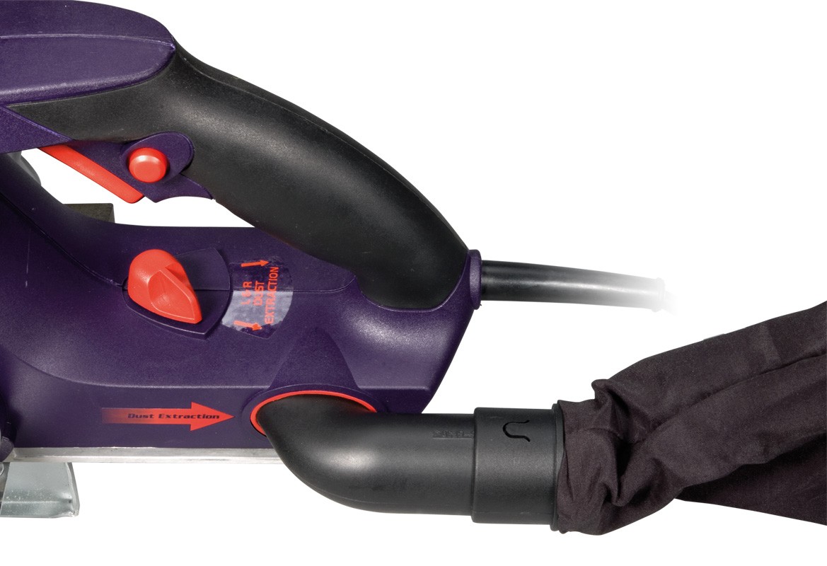 Основание из алюминиевого сплава. Сбалансированный центр тяжести. 3 V-образных паза для снятия фаски. 3 ножа для эффективной обработки древесины. Высокое число оборотов двигателя для чистой обработки материала. Предварительная установка глубины строгания. Эргономичная рукоятка с мягким покрытием из эластана. Линейка. Двухсторонняя система пылеудаления. Переключатель направления вывода стружки. Адаптер для подсоединения мешка-пылесборника. Двойная изоляция.