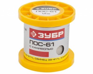 Припой бытовой, ПОС-61, с канифолью, 1 мм, 100 г ЗУБР