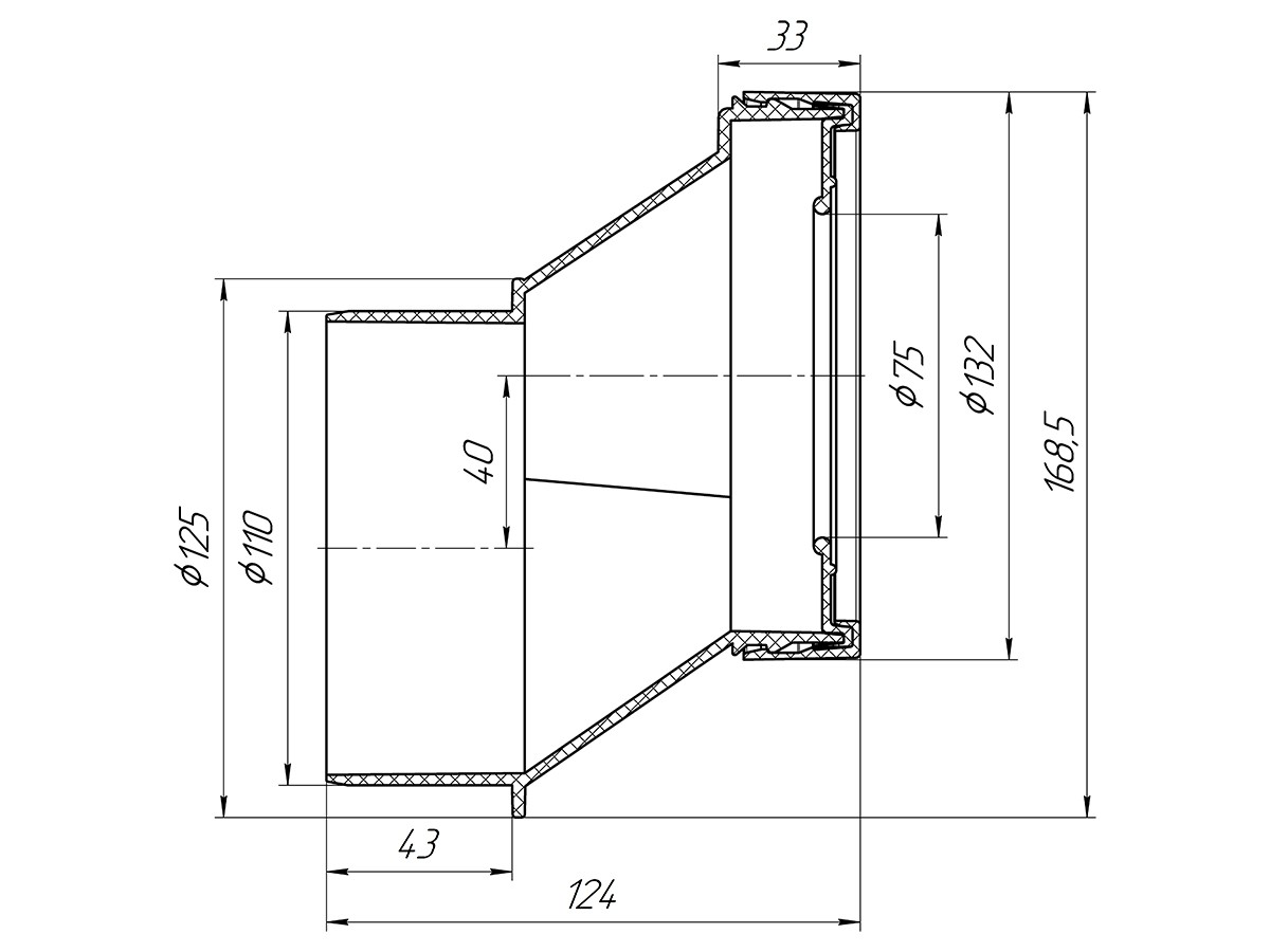 Эксцентрик для унитаза 40 мм, жесткий, с выпуском 110 мм