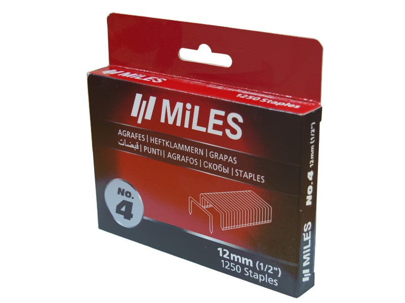 Скобы для степлера, 12 мм, тип 140, закаленные, 1250 шт MILES