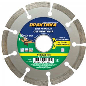 Диск алмазный 115х22,2 мм, сегментный, сухой рез ПРАКТИКА "Сделай Сам"