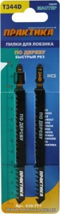 Пилки для лобзика, по дереву, быстрый рез, 132х110 мм, 2 шт, тип Т344D ПРАКТИКА