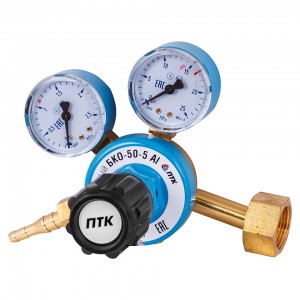 Редуктор кислородный БКО-5-5 АЛ предназначен для понижения давления газа, поступающего из баллона, и автоматического поддержания постоянным заданного рабочего давления при газопламенной обработке. Корпус редуктора изготовлен из алюминия. На редуктор установлен эргономичный задающий винт (маховичок) из высокопрочного металлопластика. БКО-5-5 АЛ производит тонкую настройку рабочего давления. Срабатывание предохранительного клапана происходит при давлении в 1,6 МПа. Используется ремонтными службами в условиях передвижных постов.